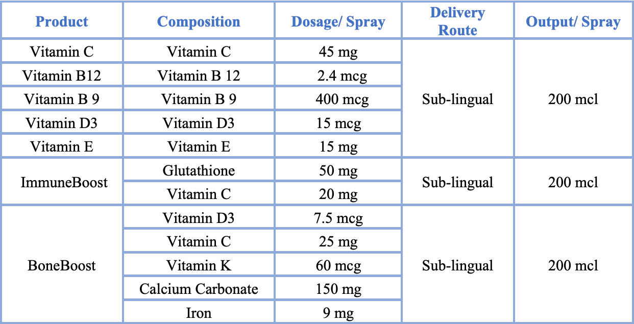 NiedlFree’s nano technology helps in rapid and increased absorption of Calcium, Vitamin D and other ingredients into the systemic circulation while administering as a simple sub-lingual spray that is pleasant in taste.