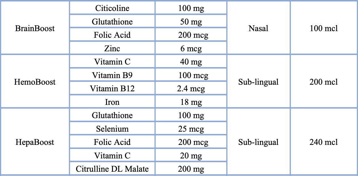 BreinBoost containing several ingredients in nano form is to be given as a nasal spray in order to reach your brain effectively for improving memory and other cognitive functions even in cases of ‘Brain Fog’ relating to post Covid infections.